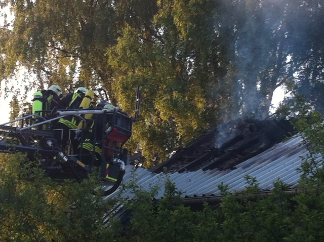 Lagerhallenbrand Von: TB 14. Juli 2013 Von der Drehleiter aus wurde durch Atemschutzgeräteträger die Dachhaut geöffnet.